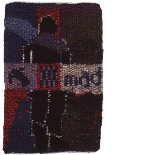 Postcard From the End of the World: Mad Woven Tapestry, wool, cotton, linen 15x10cm