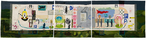 Double Parked 2005 Tapestry, wool, cotton, linen 100x400cm