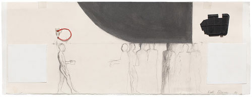 The Flat Earth and the Round World 3 1999 Graphite, plastic on paper 30x80cm