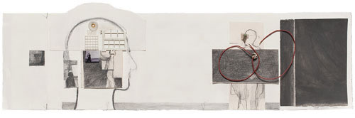 The Flat Earth and the Round World 7 2003 Graphite, plastic, metal, photograph on paper 33x119cm