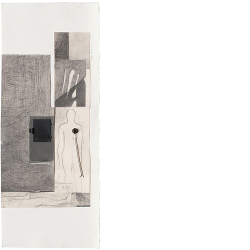 The Flat Earth and the Round World 17 2000 Graphite, plastic, metal on paper 82x32cm
