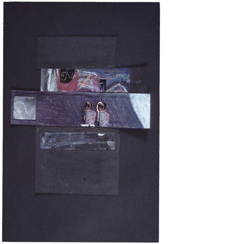 Night Messages 8 1998 Collage: paper, pastel, newsprint, photographs, pencil various dimensions within frame (Frame; 53x40cm)