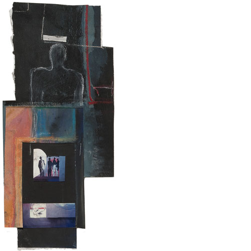 Night Messages 19 1998 Collage: paper, pastel, newsprint, photographs, pencil various dimensions within frame (Frame; 53x40cm)